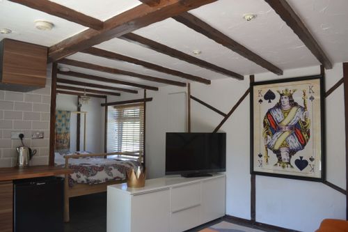 Room on offer comes with a fully fitted kitchen: oven, hob, fridge, and a seating area for diners with lovely views from French doors. This double-bedded room features a comfy sofa, TV and a contemporary bathroom with walk-in shower. Patio area out the front with table & chairs to eat and relax in the sun. The sofa bed provides sleeping for 2 little ones.